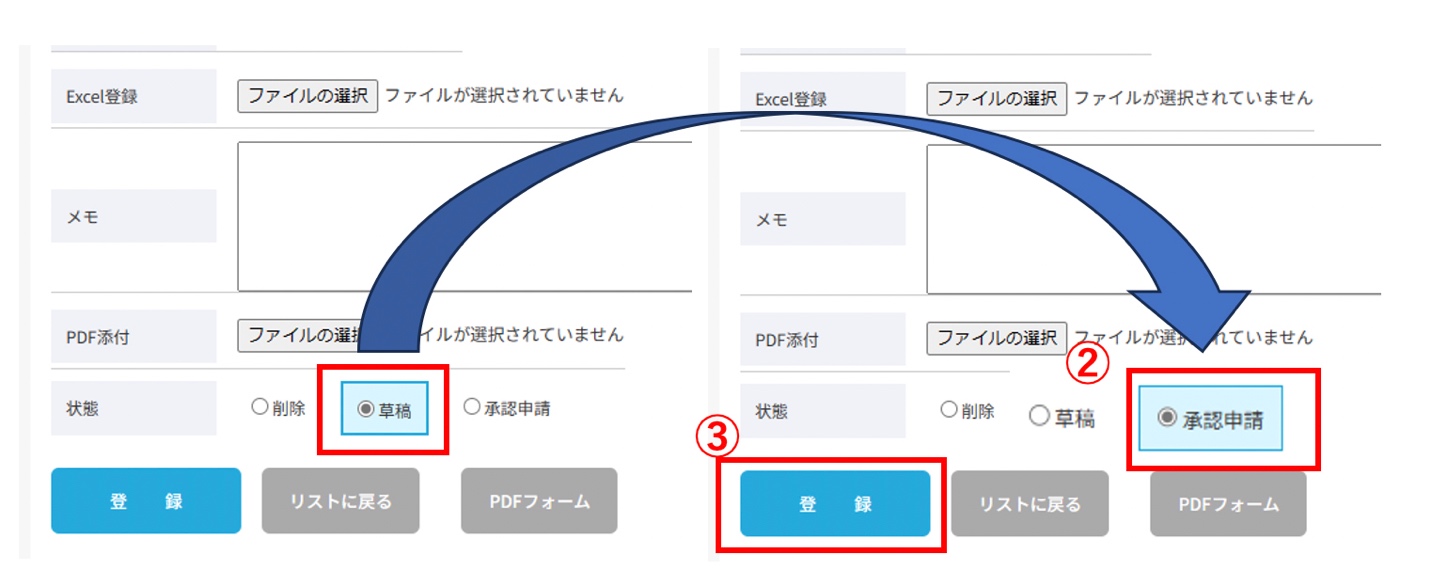 「実行予算書は営業が作成し、承認後は工事監督者に回されるため、書類作成者とは別の担当に承認を返すという複雑なフロー。実行予算書の承認がなければ現場も経理も仕事を進められないので、承認システムが実装できるかどうかが最大の難関でした」と振り返る髙橋氏。申請は役職者個人ではなく管理職アカウントを持つ社員に通知し、コミュニケーションツールで誰に申請したのかを連絡する方法を採るなど、現場もシステムも煩雑にならないバランスを見極めながら開発。PDFだと修正が入った場合に作成し直す手間がかかるため、修正が可能な「草稿」フォームを用意し、承認を受けた実行予算書が次の処理に進める設計としました。