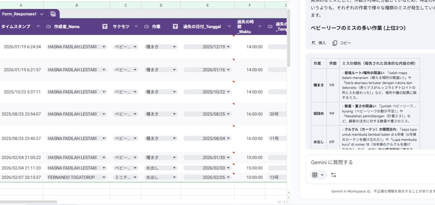 コミュニケーションの課題については、発話から文書中心にシフト。業務改善報告書のページにはGoogle翻訳の関数を入れてインドネシア語と日本語を相互に翻訳し、正確な情報共有や積極的な提案を促すことで業務改善を推進する環境を整えました。